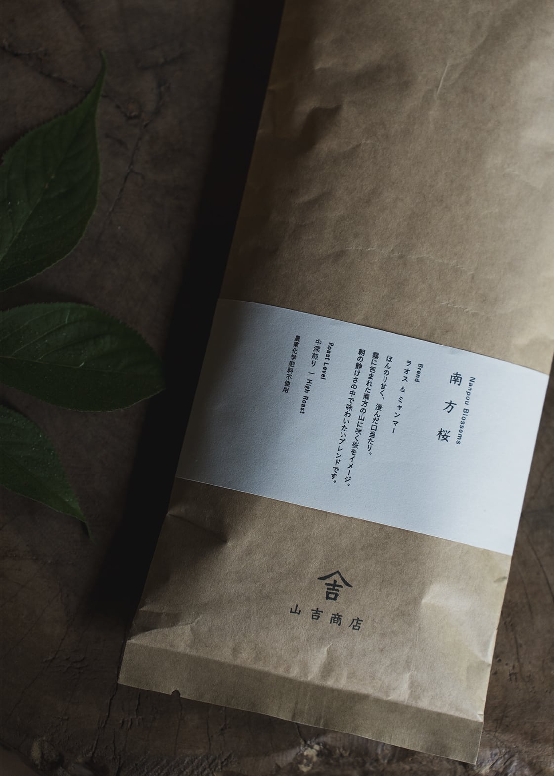 霧に包まれた南方の山あいに、ひっそりと咲く桜の情景をイメージした、山吉商店オリジナルブレンドです。